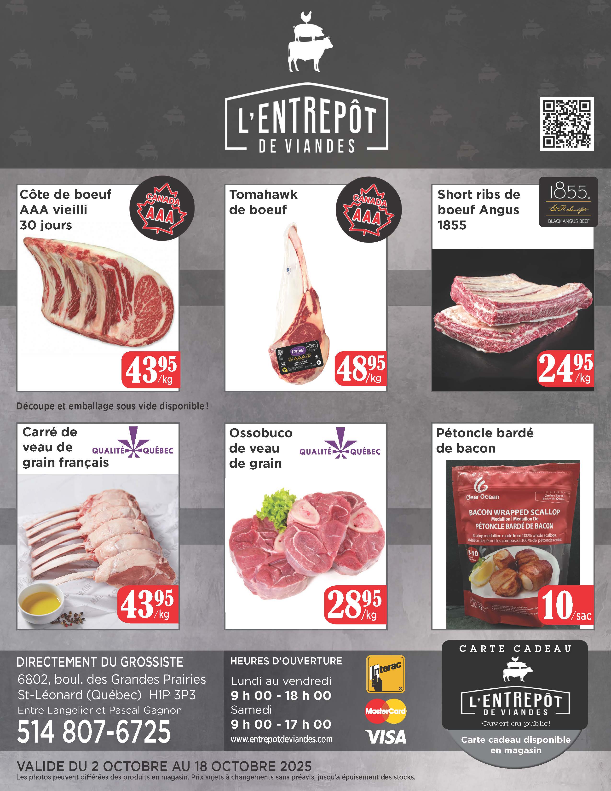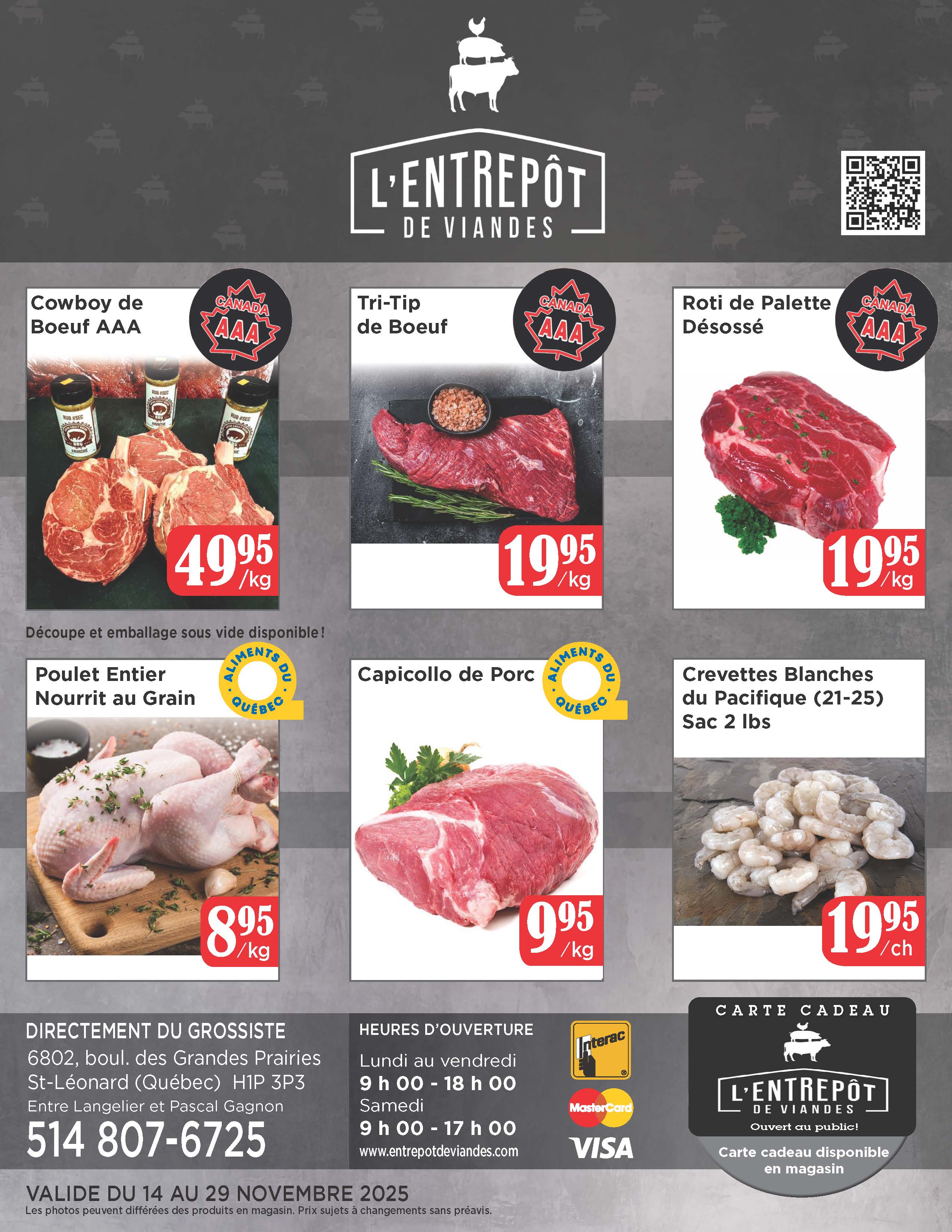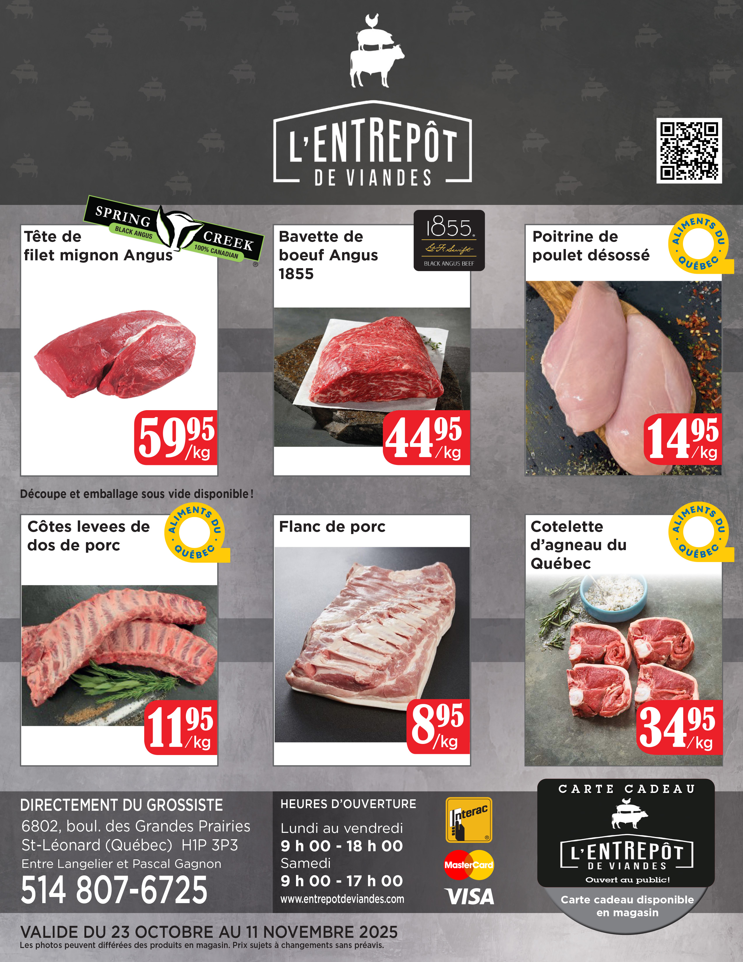Une équipe de bouchers compétents cherchant à satisfaire vos moindres besoins en matière de coupes personnalisées, de types de viandes ou de commandes spéciales a été mise en place afin de relever le défi de cette nouvelle installation. Venez rencontrer nos jeunes bouchers qui sauront répondre à vos questions, vous conseiller et préparer vos viandes selon vos spécifications !